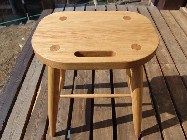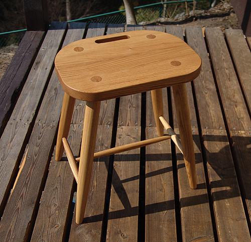 (スツール) 材料: タモ 仕上: オイル 寸法: 座面幅360mm×座面奥260mm×高430mm 価格: \29,000 (税抜、送料別) ※材料、寸法の変更、ご相談下さい |