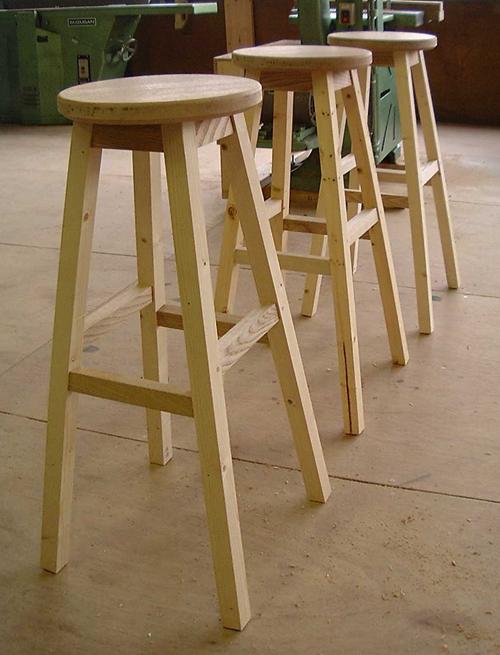 | あるバーからのご注文。既存のカウンターに合わせた高さ。「お尻をちょこんと乗せ、片足は床に着いたままのスタイルで飲めるように」 座面は小ぶりに設定。足置の位置もこの時しっくりくる寸法である。簡潔な中にも御依頼主のこだわりが感じられる。 色は自分でペンキで塗りたい、というご要望だったので無塗装のまま納品。 後日見に行くと、座面を白、脚を緑に塗ってあり、とても清潔感のある雰囲気に仕上がっていた。 |