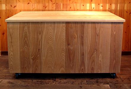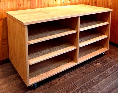 普通の箱物家具と違い「裏面」がないのである。やはりステンレス製キャスターを取付け移動可能としてある。