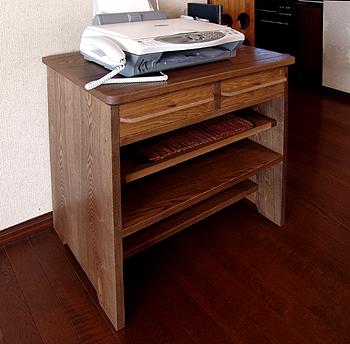 (ファックス台) 材質: タモ 仕上: 柿渋 弁柄(黒) カシュー漆 寸法: 高700mm×巾700mm×奥500mm 参考価格: ¥180,000(税抜、送料別) |