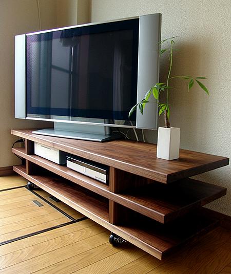 若いご夫婦からのご依頼。大型の液晶テレビとその他機器類を収納するためのテレビ台。持ち物の少ないご夫婦で、部屋は実にスッキリ
