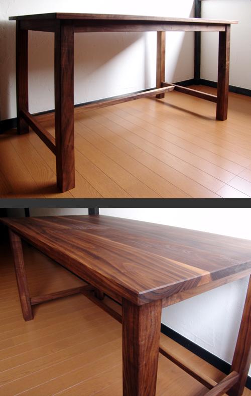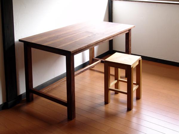今まで使っていた物よりも「広い天板」「高さは低く」というご注文。 打ち合わせ時、材料見本をお見せするととても楽しそうに迷って選ばれていたのを思い出す。濃い色がご希望で、でも着色はイヤ、 という考えに至り、ウォールナットに落ち着いた。納品時、広い天板にとても喜ばれていた。 |
