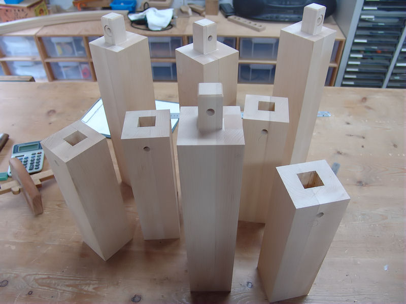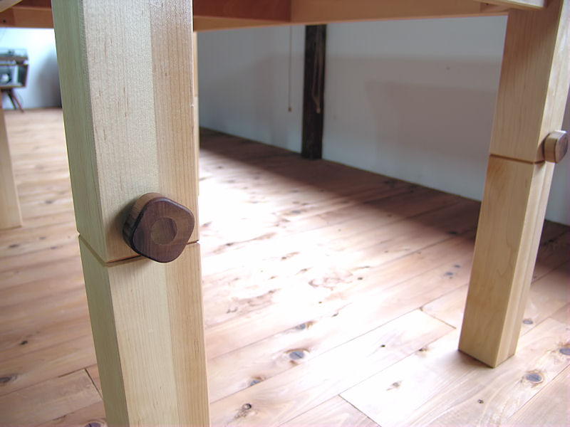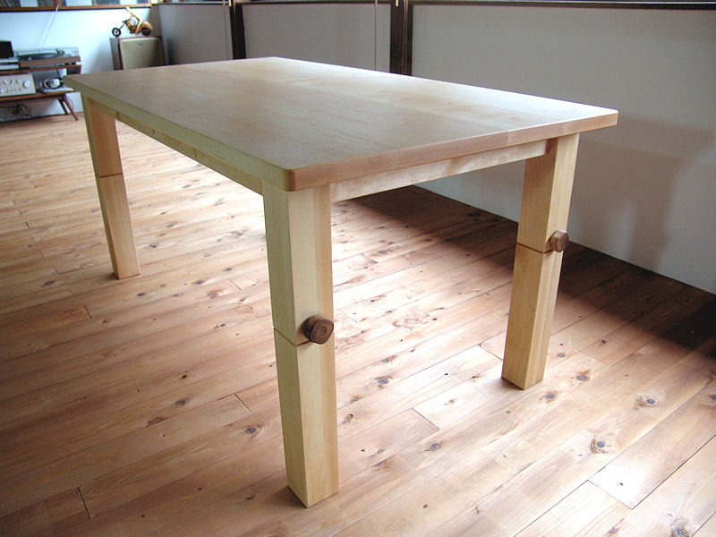 ![]() 脚接合部の雄軸は同じ材から切り出してあるので強度は抜群です |