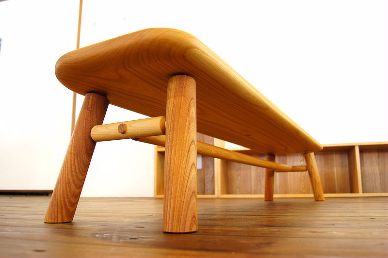 (bench) 材料: ケヤキ 仕上: オイル 寸法: 幅1400×奥300×高260mm 価格: (お問い合わせください) |
