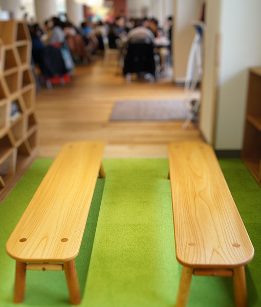 『玉川学園』様の食堂のために作らせていただきました。 キッズコーナーで子供たちが座るためのものです。もちろん大人も座れます。 子供たちが直接触れるものなので角を一切なくしたさわり心地のいいデザインになっています。 曲面が多いので美しいケヤキの木目がより引き立っています。 |