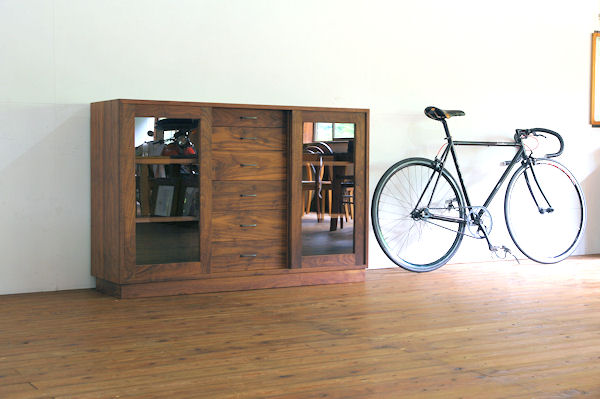 ・仕上: オイル ・寸法: 幅1400×奥400×高925mm ・仕様: 強化ガラス ・参考価格: ¥350,000(税抜、送料別) |